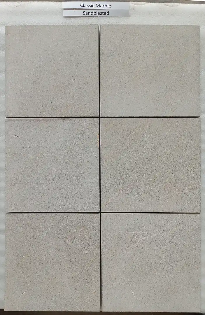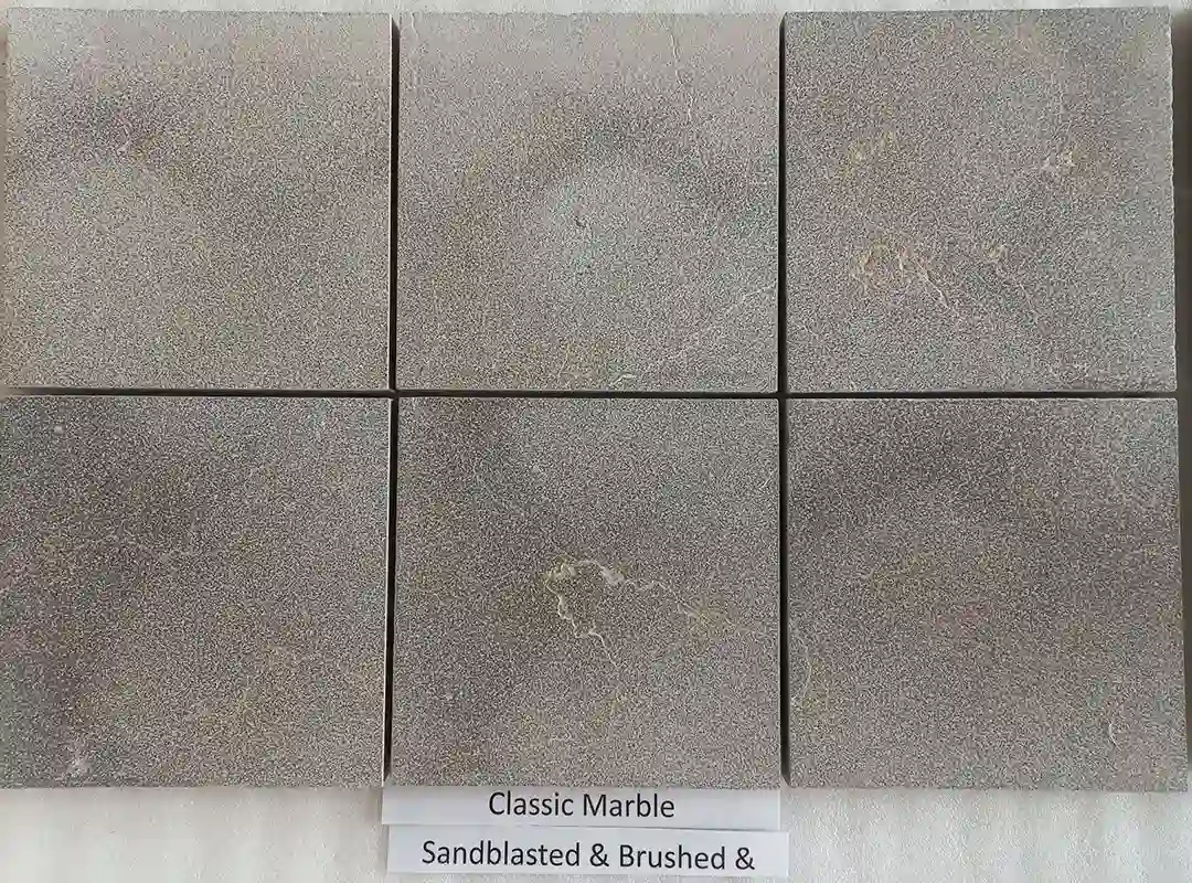 Bronze marble Sandblasted offers a refined matte surface with a subtle texture that enhances grip. Its earthy brown color and non-reflective finish make it ideal for both modern and traditional projects. This finish is particularly suitable for outdoor and high-traffic zones.