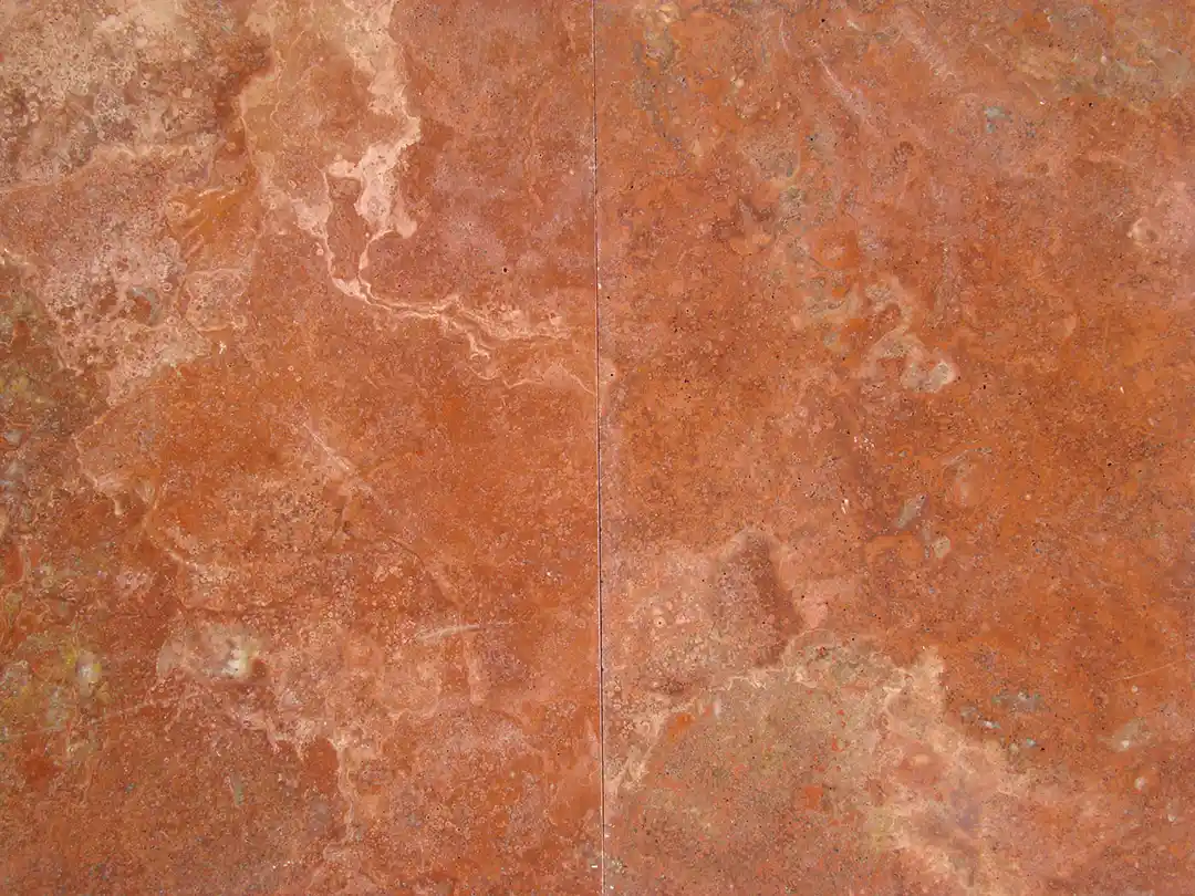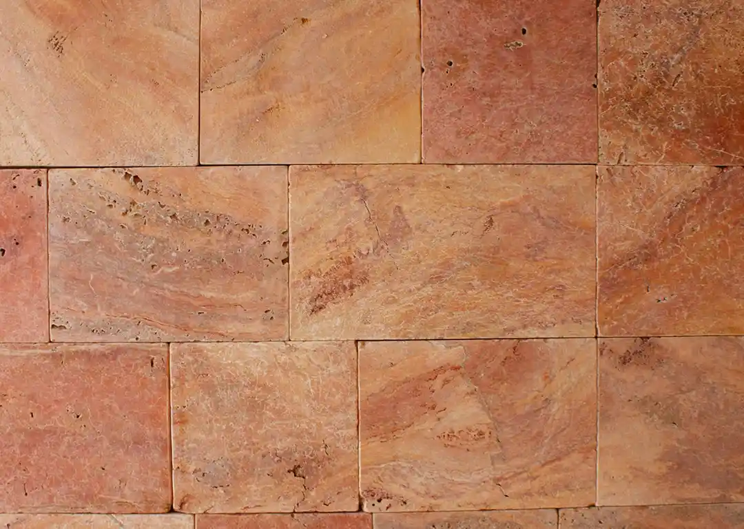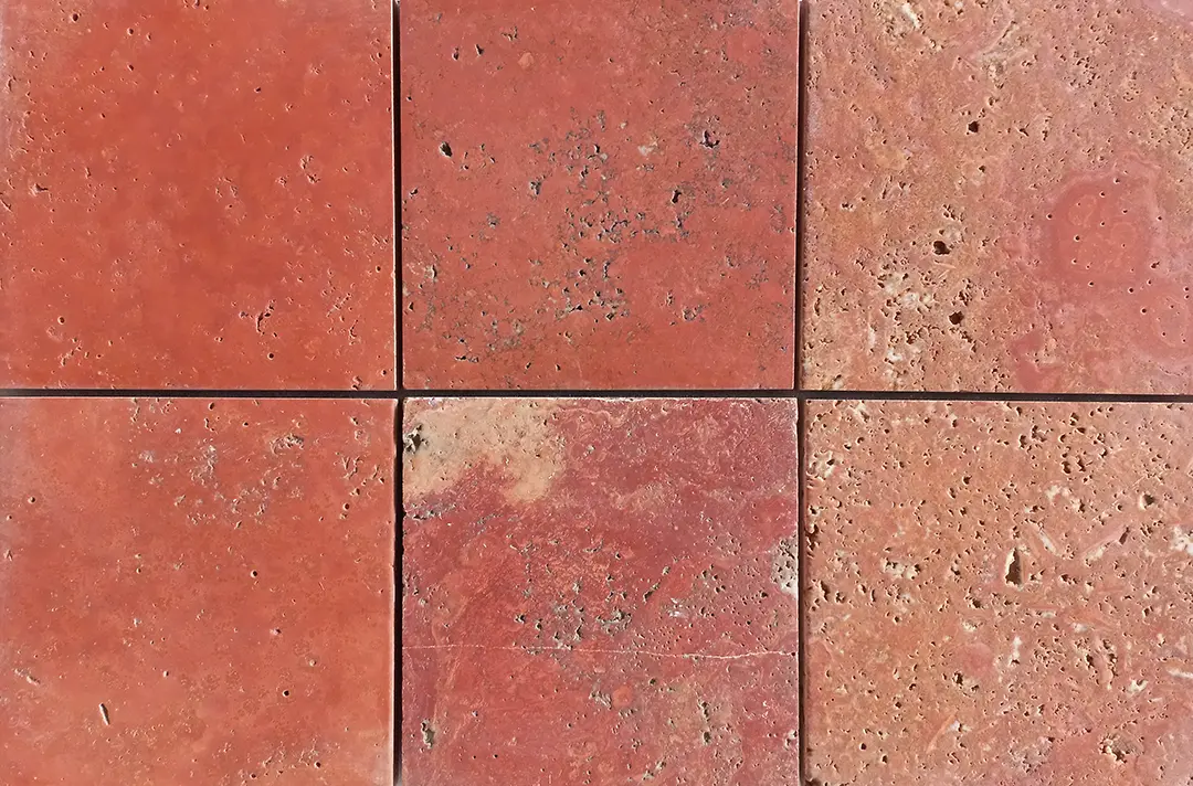 Красный травертин – поперечная резка – брашированная обработка – плитка